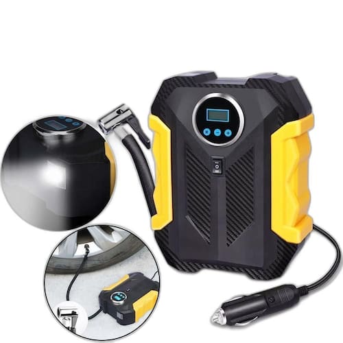 Mini compressor de ar portátil automotivo 12v plástico com calibrador + lanterna Mini compressor de ar portátil automotivo 12v plástico com calibrador + lanterna Informações adicionais: Ean: 7908412700699 Validade: indeterminada Alimentação: 12v Tamanho aproximado do compressor: 20x6,5x16,2cm Tamanho aproximado da embalagem: a:21xl:16,5cm Peso aproximado: 850g Tipo de produto: mini compressor de ar portatil automotivo 12v plastico com calibrador + lanterna Cor: preto e amarelo Composição: pp, alumínio, cobre e ferro
