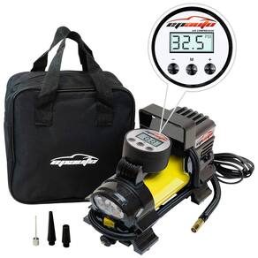 Conveniência conecte diretamente na tomada do isqueiro do seu veículo. 12 VCC, 10 a eres, 120 a 180W. Equipado com plugue de tomada de isqueiro de 12 V CC, NÃO plug de 110 V CA. Vários usos Encha pneus em carros, bicicletas, sedan e SUV de médio porte. Tamanho do motor abaixo de 3,5 litros O conector de válvula universal para válvula Schrader está pronto para uso. Adaptadores adicionais incluem valor de agulhas para bolas de basquete ou futebol, adaptadores de cone curto e cone longo para caiaque inflável, acessórios de piscina, etc. Capacidade NÃO suporta pneus de caminhão, por exemplo pneus de caminhão leve LT, pneus de caminhão de serviço pesado ou qualquer pneu de caminhão. Fácil de ler 4 unidades de exibição PSI, KPA, BAR, KG , CM FLASHLIGHT LED Tocha brilhante Impedir o excesso de inflação Desligue automaticamente ao atingir a pressão do pneu desejada. A proteção contra superaquecimento desliga automaticamente durante a sobrecarga Marca: Não Informado