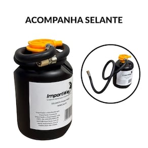 Acessórios incluídos: 1 Mini Compressor, 3 Bicos Adaptadores, 1 Selante, 1 Bolsa de Transporte, 1 Manual