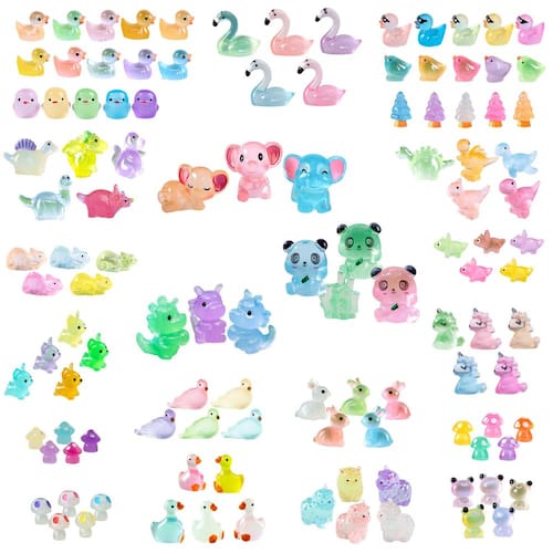 Este item não é destinado a usuários menores de 12 anos. - Característica mágica que brilha no escuro: esses pequenos animais de resina absorvem luz durante o dia e emitem um efeito suave e brilhante à noite, adicionando um toque mágico aos seus jardins, terrários ou decoração de casa [ESTE ITEM NÃO É DESTINADO A USUÁRIOS COM MENOS DE 12 ANOS.] - Coleção diversificada e colorida: este conjunto de animais de resina de 120 peças inclui patos, pandas, pássaros, cogumelos, dinossauros e muito mais! Este conjunto de variedades de animais de resina apresenta 25 designs exclusivos de animais, cada um disponível em vibrantes para se adequar a qualquer tema ou projeto criativo - Detalhes intrincados e características realistas: cada mini resina animal a granel é cuidadosamente trabalhada com detalhes realistas e cores atraentes, tornando-os perfeitos para melhorar qualquer configuração decorativa ou projeto de artesanato - Durável e de alta qualidade: Feito de resina de alta qualidade, estes bonecos de resina em miniatura são leves, resistentes e resistentes às intempéries, garantindo que mantenham seu charme em ambientes internos ou externos - Decoração versátil: Perfeito para jardins de fadas, terrários, mesas ou vasos de flores. A variedade de designs e características brilhantes os tornam divertidos para decoração