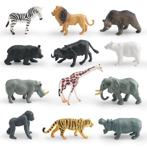 Conjunto de 12 miniestatuetas de animais selvagens, bonecos de PVC, incluindo leão, zebra, elefante, gorila, rinoceronte, tigre e urso, brinquedos realistas de animais para crianças, decorações educacionais para maiores de 3 anos Descrição: Material: PVC Tamanho: 1,5 a 6,5 cm Peso: 128 g Características: Conjunto completo de figuras de animais: este conjunto inclui 12 miniestatuetas de animais, com modelos realistas de leão, zebra, elefante, gorila e rinoceronte, tigre e urso, feitos de PVC durável. Diversão educativa para crianças: perfeitas para ensinar crianças sobre animais selvagens, essas estatuetas são ótimas para melhorar o desenvolvimento cognitivo e incentivar brincadeiras e aprendizado criativos. Versátil para exibir e brincar: ideais para uso como brinquedos educativos, decoração de quartos ou adições de diorama, essas minifiguras de animais oferecem oportunidades infinitas de imaginação e criatividade. Seguras e duráveis: feitas de material de PVC não tóxico, essas estatuetas são seguras para crianças e feitas para durar horas de brincadeira, oferecendo um ótimo valor para brincadeiras e educação. Compacto e colecionável: cada boneco varia de 1,5 a 6,5 cm, o que o torna perfeito tanto para mãos pequenas quanto para fácil armazenamento ou exibição, ideal para crianças de 3 anos ou mais. O que vem na caixa: 12 x Mini conjunto de estatuetas de animais selvagens