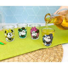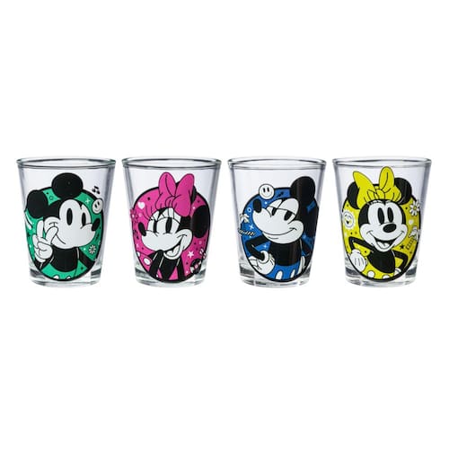 - Design divertido e colorido: possui 4 mini óculos, cada um apresentando padrões de círculo pop em cores ousadas e vibrantes com arte do Mickey e Minnie Mouse. Cada copo comporta 42,5 g da sua bebida favorita.