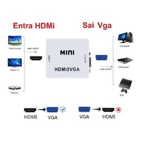 O HDMI para VGA é um conversor de vídeo HD que converte sinal HDMI para sinal analógico VGA e áudio P2. Ajudando usuários que desejam transformar o sinal HDMI em VGA, a utilização do aparelho é muito fácil. Basta plugar os cabos, ligar o cabo USB de alimentação e utilizar. -vale ressaltar que o aparelho não converte o sinal de forma inversa, então ele apenas transforma o sinal HDMI em sinal VGA, não fazendo a função inversa.