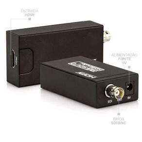 Converta o sinal HDMI para SDI Serial Digital Interface mantendo a alta qualidade das gravações. O Mini Conversor HDMI para SDI GEF-SH é deal para transmissões broadcast de áudio e vídeo. Ele suporta sinal SDI e reproduz com mesma precisão em distâncias de até 300 metros via cabo para HDMI em HD 1080p, garantindo altas taxas de resoluções para dar-lhe a transmissão do sinal rápido sem qualquer perda. Para profissionais, isto significa que agora é mais fácil de utilizar suas câmeras e filmadoras HDMI em equipamentos de broadcast profissional.Principais Características: convete o sinal HDMI para SDI em broadcast Entrada HDMI e Saída SDI/BNC possui suporte para 3G-SDI, HD-SDI e SD-SDI transmite alta resolução H Dem até 100m permite usar Câmera DSLR HDMI em transmissão ao vivoObs: Importante verificar antes da compra se seu equipamento é mesmo com Saída SDI Digital , equipamentos com saídas BNC Composto Analógico não serão compatíveis, para isso seria necessário um Conversor SDI de Sinal Analógico para Digital.Ficha Técnica:Entrada: 1 HDMI Saída: 1 SDIAlcance de saída: Saída SDI até 100 metros 3G-SDI , 200 metros HD-SDI , ou 300 metros SD-SDI Resolução HD de entrada: 480i59.94, 576i, 720p50/59.94/60, 1080i50/59/60, 1080p23.98/24/25/29.97/30/50/59.94/60taxa de bits: 2.970gbit / s, 1.485gbit / s e 270Mbits/sAlimentação: 5V -12VItens Inclusos: 1 Mini Conversor HDMI para SDI 1 Fonte de energia1 Manual do usuário