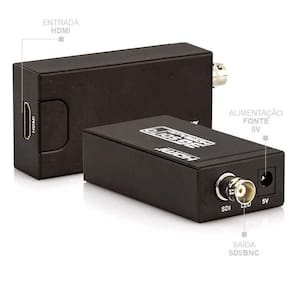Converta o sinal HDMI para SDI Serial Digital Interface mantendo a alta qualidade das gravações. O Mini Conversor HDMI para SDI GEF-SH é deal para transmissões broadcast de áudio e vídeo. Ele suporta sinal SDI e reproduz com mesma precisão em distâncias de até 300 metros via cabo para HDMI em HD 1080p, garantindo altas taxas de resoluções para dar-lhe a transmissão do sinal rápido sem qualquer perda. Para profissionais, isto significa que agora é mais fácil de utilizar suas câmeras e filmadoras HDMI em equipamentos de broadcast profissional.Principais Características: convete o sinal HDMI para SDI em broadcast Entrada HDMI e Saída SDI/BNC possui suporte para 3G-SDI, HD-SDI e SD-SDI transmite alta resolução H Dem até 100m permite usar Câmera DSLR HDMI em transmissão ao vivoObs: Importante verificar antes da compra se seu equipamento é mesmo com Saída SDI Digital , equipamentos com saídas BNC Composto Analógico não serão compatíveis, para isso seria necessário um Conversor SDI de Sinal Analógico para Digital.Ficha Técnica:Entrada: 1 HDMI Saída: 1 SDIAlcance de saída: Saída SDI até 100 metros 3G-SDI , 200 metros HD-SDI , ou 300 metros SD-SDI Resolução HD de entrada: 480i59.94, 576i, 720p50/59.94/60, 1080i50/59/60, 1080p23.98/24/25/29.97/30/50/59.94/60taxa de bits: 2.970gbit / s, 1.485gbit / s e 270Mbits/sAlimentação: 5V -12VItens Inclusos: 1 Mini Conversor HDMI para SDI 1 Fonte de energia1 Manual do usuário Marca: Não Informado
