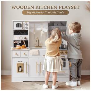 A Cozinha de Brinquedo Deluxe Branca e Dourada da ROBUD traz a brincadeira de cozinha à vida com detalhes como uma torneira real, cafeteira e forno, estimulando a imaginação e criatividade das crianças. Feita com materiais premium, com superfícies lisas e sem odor, e bordas arredondadas para garantir uma brincadeira segura e sem preocupações. Com detalhes interativos como botões giratórios, torneira funcional e porta do forno que abre e fecha, este conjunto imita ações reais de cozinha, ajudando as crianças a desenvolver habilidades valiosas por meio da brincadeira. Sua aparência elegante, com design branco e dourado, se encaixa lindamente em qualquer ambiente. Detalhes como uma cafeteira, cortinas e armários de armazenamento adicionam um toque luxuoso. Fácil de montar, com instruções claras e todas as ferramentas necessárias, perfeito para crianças a partir de 3 anos. Um presente incrível para aniversários, Natal ou qualquer ocasião! Este conjunto de cozinha deluxe cresce com a criança, incentivando a independência e responsabilidade.