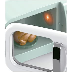 Esse mini microondas é ideal para crianças que adoram brincar de casinha. Seu design verde menta traz um toque de estilo para qualquer ambiente. Com som, luzes, visor de contagem do tempo, portinha que abre e fecha, é feito em material seguro e durável. Explore toda a coleção para experiências realistas na cozinha do faz de conta!