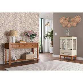 Esta cristaleira é produzida em Madeira Maciça Pinus Taeda e MDF, proveniente de florestas renováveis, que unidos às diversas técnicas e tecnologias de produção, garantem ao produto maior vida útil e durabilidade. A resistência da Cristaleira de Madeira Maciça também está em sua pintura em Laca, com qualidade superior de acabamento e maior durabilidade aos desgastes naturais. O toque final está nos seus puxadores de metal e portas com vidro, que aprimoram ainda mais o estilo marcante do produto, unindo beleza e funcionalidade.