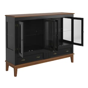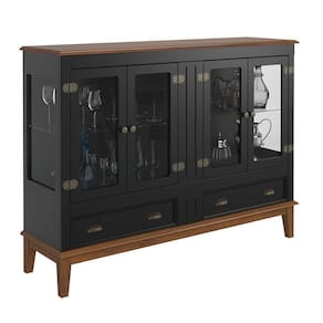 Mini Cristaleira de Madeira Maciça 4 portas Preto -