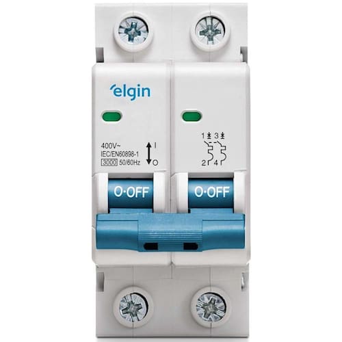 Mini Disjuntor 2 Polos 20a DISJUNTOR TERMOMAGNÉTICO BIPOLAR ELGIN 2 POLOS 20A Os mini disjuntores Elgin são equipamentos destinados à proteção de instalações de baixa tensão contra curto-circuitos e sobrecargas. São construídos rigorosamente dentro das normas, proporcionando o máximo de segurança a sua instalação elétrica residencial ou comercial. Sua construção permite a possibilidade do travamento da manopla sem o comprometimento da proteção dos circuitos. O disjuntor vem em uma embalagem Color exclusiva da Elgin, que contém uma tabela de utilização e informações do INMETRO no verso. Características Técnicas: Corrente Nominal (In): 20A; Curva de Disparo: Tipo C; Tensão de Operação (Ue) 2P 415V; Tensão de Isolamento Nominal (UI): 500 V; Tensão de Ruptura: 3KA; Frequência Nominal (CA): 50/60 Hz; Classe de Energia 3; Temperatura de Funcionamento: -25C a 70C; Grau de Proteção: IP20; Tipo de Instalação: DIN 35 mm; Tipo de Disparo: Térmico e Magnético Tipo Fixo; Alto nível de Proteção de Cabos; Normas: NBR NM 60898. DISJUNTOR TERMOMAGNÉTICO BIPOLAR ELGIN 2 POLOS 20A Os mini disjuntores Elgin são equipamentos destinados à proteção de instalações de baixa tensão contra curto-circuitos e sobrecargas. São construídos rigorosamente dentro das normas, proporcionando o máximo de segurança a sua instalação elétrica residencial ou comercial. Sua construção permite a possibilidade do travamento da manopla sem o comprometimento da proteção dos circuitos. O disjuntor vem em uma embalagem Color exclusiva da Elgin, que contém uma tabela de utilização e informações do INMETRO no verso.