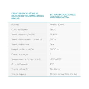Proteja seus circuitos com os Mini Disjuntores Bipolares 25A Curva C Elgin. Eles são ideais para cargas indutivas, como ar-condicionado, micro-ondas e equipamentos que produzem picos de corrente na partida.Os disjuntores Elgin são construídos com qualidade máxima, seguindo rigorosas normas técnicas para instalações residenciais e comerciais de corrente alternada. Além disso, eles possuem um recurso inteligente de travamento da manopla, garantindo a proteção dos circuitos.Escolha a confiança da marca Elgin para obter a melhor combinação de qualidade, proteção e segurança elétrica. Invista em um ambiente seguro e eficiente com os Disjuntores Bipolares Elgin.