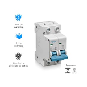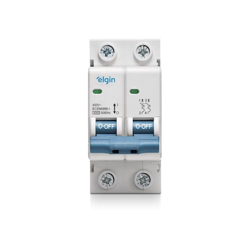 Proteja seus circuitos com os Mini Disjuntores Bipolares 40A Curva C Elgin. Eles são ideais para cargas indutivas, como ar-condicionado, micro-ondas e equipamentos que produzem picos de corrente na partida.