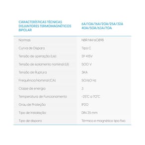 Proteja seus circuitos com os Mini Disjuntores Bipolares 50A Curva C Elgin. Eles são ideais para cargas indutivas, como ar-condicionado, micro-ondas e equipamentos que produzem picos de corrente na partida.