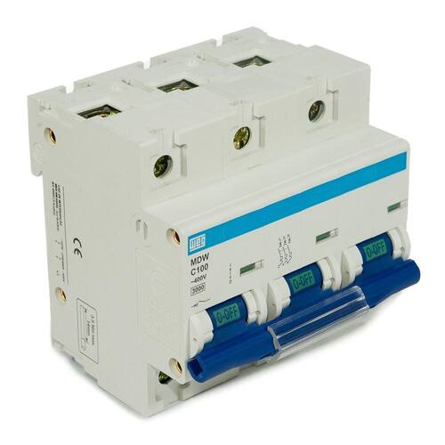 informações técnicas descrição: mdw código: 10075747 curva de disparo: c corrente nominal: 100a número de polos: 3 polos tensão de emprego: 440vca/250vcc frequência: 50/60 hz