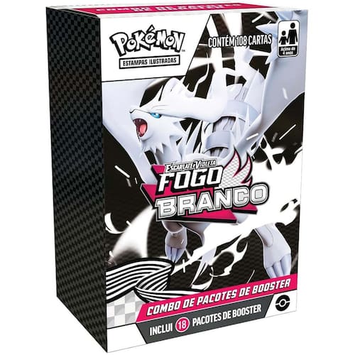 Fogo BrancoEXPLORE UMA REGIÃO DE HARMONIA E VERDADE!Reencontre os Pokémon de Unova e alcance o seu ápice como Treinador em uma terra de união e lendas! Evolua os parceiros iniciais Tepig e Oshawott até se tornarem Emboar e Samurott, e descubra o poder inegável da verdade com os Pokémon Lendários e Míticos da região, incluindo Reshiram ex e Keldeo ex. Fique de olho nas ilustrações especiais de cada Pokémon e nas cartas paralelas com desenhos de Poké Bolas enquanto completa seu Pokédex na expansão Escarlate e Violeta - Fogo Branco do Pokémon Estampas Ilustradas! Aumente a sua coleção com este combo, que conta com 18 pacotes de booster (108 unidades de cartas) de Escarlate e Violeta - Fogo Branco do Pokémon Estampas Ilustradas!