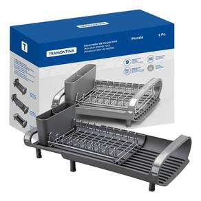Descrição técnica: Marca: Tramontina Linha: Plurale Cor: Grafite Material: Suporte para pratos e detalhes das alças em Aço Inox, base e porta talheres em Polipropileno Dimensões do produto: 12,60cm x 19,90cm x 27,80cm (AxLxC) Peso: 585g
