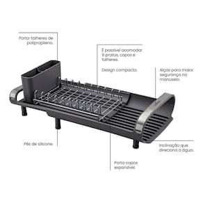 Mini Escorredor Louça Aço Inox Expansível Tramontina Plurale Grafite Prático