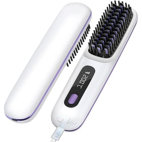Mini Escova Alisadora Portátil Recarregável com Visor de Led