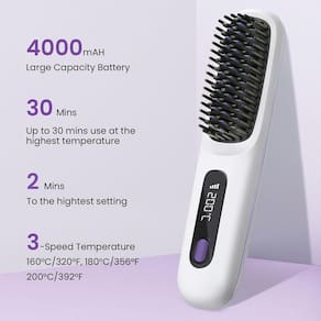 Escova alisadora super prática para o dia a dia, o seu tamanho é pequeno e compacto que cabe em bolsa, mochilas e malas Totalmente recarregável esse modelo de escova permite que você alise seu cabelo em qualquer lugar sem depender de tomadas Entrada para carregar tipo C Duracao da Bateria cerca de 30 min Com o visor de led que permite você ver a temperatura da escova Cerdas em cerâmica Bateria duradoura Controle preciso da temperatura Sem fio Super leve e recarregável Potencia 35 W 110 v Marca: Não Informado