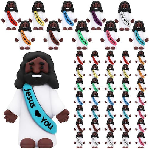 Características: Presentes de festa religiosa: Um conjunto de 50 mini estatuetas de borracha de Jesus, projetadas para jogos criativos e atividades religiosas. Adequado para jogos de esconde-esconde, enchimentos de ovos de Páscoa, artesanato de escola dominical, presentes de batismo e presentes de festa. Presentes de Jesus: Você pode escondê-los à vista de todos, ou colocá-los nas mãos de outra pessoa, você pode compartilhar este pequeno Jesus que você encontrou, encontrá-lo, levá-lo, mantê-lo, compartilhá-lo, nós realmente acreditamos que todos precisam disso. Especificações: Material: borracha Cor: conforme mostrado na figura. Tamanho: cerca de 1,2 x 1,4 pol. / 3 x 3,5 cm A embalagem inclui: 50 x Mini Jesus Preto Observações: Medição manual, considere pequenos erros no tamanho. A cor pode existir uma pequena diferença devido a diferentes telas. - Cute Tiny Jesus Bulk: você receberá 50 mini estátuas pretas de Jesus, a quantidade é suficiente para atender às suas necessidades de uso e substituições, você pode compartilhar com amigos - Material de qualidade: este pequeno Jesus preto é feito de material de borracha, com uma superfície resistente e lisa, não desbota facilmente, deforma e quebra - Tamanho adequado: estas mini estátuas de Jesus têm cerca de 1,2 x 1,4 polegadas/3 x 3,5 cm de tamanho, com aparência realista e design fofo, adicionando um toque de cor às suas férias e vida diária - Presente ideal: estas estatuetas pretas de Jesus são presentes ideais para amigos, colegas e familiares, com as palavras Jesus ama você gravadas neles, você pode usá-las para espalhar alegria - Ampla aplicação: nossos mini brinquedos pretos de Jesus são adequados para várias ocasiões, incluindo escola dominical, (escola bíblica de férias), presentes de Páscoa e presentes de Natal, para que você possa incorporá-los em atividades significativas