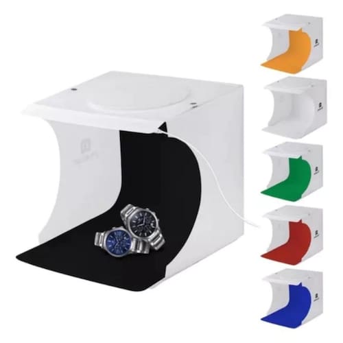Mini Estúdio Fotográfico Cabine Dobrável 23x24 LED 6 Fundos Quer tirar fotos incríveis de produtos, acessórios ou objetos pequenos sem precisar de um estúdio O Mini Estúdio Fotográfico B-MAX BM-F1131 é a solução ideal para quem busca qualidade, praticidade e excelente iluminação para suas fotografias A estrutura é dobrável, permitindo instalar, transportar e fotografar de forma fácil e prática O produto conta com iluminação embutida em LED na parte superior, disposta de forma que reduz os pontos de sombra. O produto conta com 6 cores de fundo infinito e com um cabo USB, além de conter abertura frontal e superior para fotografar em ângulos variados. - DIMENSÕES: 23 x 24 x 23 cm - ITENS INCLUSOS: . 1 x mini studio . 2 x fitas de led . 6 x fundos de cores diferentes . 1 x cabo USB Marca: Não Informado