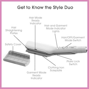 - Suave para cabelos e roupas: a tecnologia cerâmica é suave para cabelos e roupas, atingindo a temperatura certa para cada função. As placas internas atingem 395 graus F para cabelos. A placa externa atinge 300 graus F para roupas.