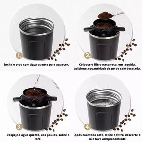 Especificações: - Material: Plástico e Aço Inox - Medida: 07cm x 06cm - Portátil - Cor: Preto - Reutilizável - Não precisa de Filtro de Papel - Com Suporte ===================================== Devido à diferença entre monitores e iluminação diferentes, pode haver variação na tonalidade apresentada no anúncio. Medidas muito aproximadas. Marca: Não Informado