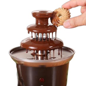 Ele mantém o chocolate derretido com uma base aquecida que o mantém aquecido e fluindo.