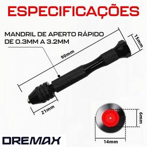 Mini Furadeira Manual Mandril Aperto Rápido 0.3 a 3.2mm Dremax - Marca: Dremax - Referência: FM00 - Furadeira manual para trabalhos delicados em joias, madeiras, circuitos, etc - Material da furadeira: Liga De Alumínio - Mandril de aperto rápido de 0.3 a 3.2mm - Furadeira com punho ergonômico - Comprimento: 90mm - Peso: 20 gramas - : 90 dias Atenção: Não é uma furadeira elétrica. É uma furadeira manual para trabalhos leves, de precisão Marca: Não Informado Ean: 7898752020505