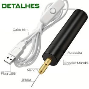 Mini furadeira usb com mandril de aperto rápido leve para trabalhos manuais e diy dremax Mini furadeira usb dremax: precisão e potência na palma da mão Cansado de ferramentas grandes, pesadas e complicadas para pequenos trabalhos manuais A mini furadeira usb dremax foi feita para quem busca agilidade, controle e praticidade no dia a dia. Com design compacto, mandril de aperto rápido e alimentação via usb, ela é perfeita para trabalhos delicados em plástico, madeira, resina, bijuterias e muito mais. Principais vantagens: - compacta e portátil - ideal para usar em qualquer lugar, sem complicações - alimentação por usb - conecte em power bank, notebook ou adaptador - mandril de aperto rápido 0.7 a 1.2mm - troque brocas com facilidade - 1 broca hss inclusa - alta durabilidade e precisão nos furos - perfeita para diy, artesanato e pequenos reparos - plug and play - pronta para usar em segundos Como funciona: - conecte a furadeira via usb a qualquer porta 5v computador, carregador, etc - use o botão liga/desliga para acionar - trabalhe com controle e precisão mesmo nos materiais mais delicados - troque as brocas facilmente com a chave inclusa - guarde com segurança: leve, prática e sem fios Ficha técnica: - marca: dremax - referência: fm004 - potência: 15w - tensão: 5v - alimentação: usb - cabo de 1,6m - mandril: aperto rápido 0.7 a 1.2mm - acompanha: 1 broca em aço rápido hss + 1 chave allen - comprimento total: 9cm - : 90 dias 1. Fura mesmo materiais como madeira ou plástico Sim apesar de compacta, a mini furadeira dremax é potente o suficiente para trabalhos em madeira, mdf, plástico, acrílico e resina. 2. Funciona em qualquer entrada usb Sim. Pode ser Utilizado em computadores, carregadores de celular, power banks ou fontes usb 5v. 3. É indicada para trabalhos de joalheria ou artesanato fino Sim. Seu mandril de precisão permite uso com brocas finas, ideais para furos delicados e pequenos acabamentos. 4. Já vem com broca Sim. Acompanha 1 broca de aço rápido hss ideal para materiais leves, além de chave para ajuste. 5. Essa furadeira é a bateria Não. Ela é alimentada via cabo usb, o que garante leveza, praticidade e uso contínuo sem depender de recarga.