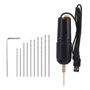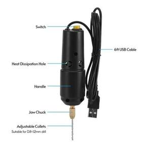 Mini Furadeira Usb Portátil Artesanato Resina Madeira Jóias Características: Função: Projetado para joias de resina, fazendo o torno de pino irá ajudá-lo a perfurar pequenos orifícios em resina facilmente, o que pode trazer muita conveniência para fazer colar, pulseira, pingente, brinco, chaveiro e assim por diante. Insira a broca que você precisa, em seguida, aperte a cabeça firmemente para terminar a instalação. Cabo USB Especificações Material: ABS Cor: Preto Tamanho do pacote: 17,5x8 x4cm Peso do pacote: 130g Pacote inclui: 01 - Mini broca elétrica USB 10 - Brocas de 0.8mm até 1.2mm Marca: S.G Style
