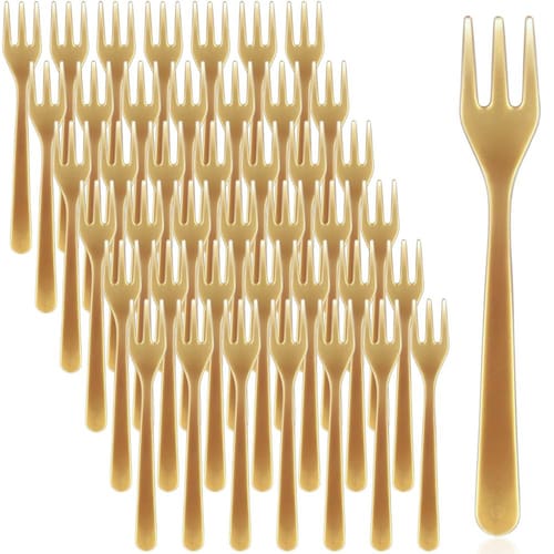 - Mini garfos para aperitivos: esses mini garfos dourados têm aproximadamente 3,7 x 0,6 polegadas/9,5 x 1,5 cm, ideais para hóspedes ou clientes saborearem pequenas sobremesas ou porções pequenas