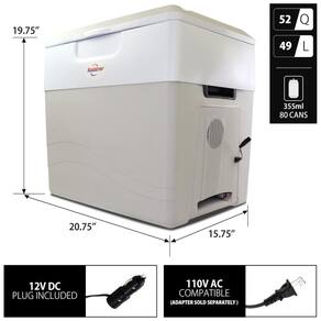 ENORME REFRIGERADOR DE VIAGEM COM CAPACIDADE DE 49 L , 52 QUARTO Nosso refrigerador alimentado por 12V DC de capacidade comportamental todas as 80 latas padrão de viagem 12 oz, 355 mL para suas viagens, transporte rodoviário ou viagem TECNOLOGIA TERMOELÉTRICA ICELESS Tecnologia termoelétrica sem CFC e motor do ventilador sem escovas resfria eficientemente a 40F 22C abaixo da temperatura ambiente ou aquece a 140F 60C, usando menos do que a luz traseira de sua energia veículo FUNÇÕES DE AQUECIMENTO E REFRIGER Use no modo de resfriamento para lanches de carnes e movimento ou modo de espera para levar a ou para os pratos quentes para uma reunião de família DESIGN VERSÁTIL Com uma proteção portátil magnética segura, você pode usar esta unidade como um refrigerador ou de lado um estilo um refrigerador portátil Marca: Não Informado
