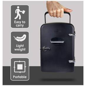 A Mini Geladeira Retrô Koolatron de 4 litros combina design clássico e eficiência moderna, ideal para armazenar itens de skincare, cosméticos, bebidas e lanches em um tamanho compacto e fácil de transportar. Com seu acabamento retrô e detalhes em cromo, é um acessório estiloso e funcional para qualquer ambiente, seja quarto, escritório, ou até mesmo em viagens.