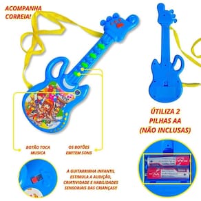 Funções: toca som. A guitarrinha infantil estimula a audição, criatividade e habilidades sensoriais das crianças O que você vai receber em sua casa conteúdo da embalagem