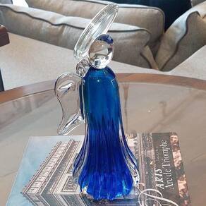 Mini Imagem de Anjo 22cm Vidro Murano Azul São Marcos