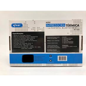 Mini-impressora Portátil Bluetooth Térmica 48mm Android IOS KP-1025 - Knup Adequado para todos os tipos de sistemas de ESC/POS de varejo comercial Impressão de alta qualidade e de baixo custo. Baixo nível de ruído e de alta-velocidade de impressão. Fácil para a instalação de papel, fácil manutenção e excelente estrutura. Baixo consumo de energia e baixo custo de operação Ideal a ser utilizada em Pc, Notebook e Celulares, e adequados para ambientes de trabalho ao ar livre. Pequena, leve, com desempenho de confiança, simples para se conectar e fácil de usar. Especificações Técnicas: - Método de impressão: linha de impressão Térmica - Largura de impressão: 48mm - Modo de impressão: Normal e Hexadecimal - Largura do rolo de papel: 58mm - Espessura do papel: 0,06 a 0,08 mm - Tipo de papel: Papel Térmico - Fonte de alimentação: Entrada 100 ~ 240Vac/ 50 - 60Hz Saída 9Vdc / 500MA - Bateria: bateria De Lítio: 7.4vdc/1800mah - Tempo de recarga: 2:30 horas - Densidade de impressão: Nível 13 - Velocidade de impressão: até 50-80mm/s Homologação Anatel: 080281811799 Ean: 7898652413209