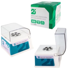 Características do produto Indicações Mini Incubadora 2I é indicado para incubar indicadores biológicos auto-contidos. Utilizados para monitorar ciclos de esterilização. Composição Composição da câmara de incubação : alumínio; Composição da carenagem : plástico ABS. Diferenciais e benefícios Capacidade de incubar 6 indicadores biológicos. Com câmara de incubação em alumínio. Incuba até 6 indicadores biológicos simultaneamente. Com Led Indicativo. Ideal para testar o processo de esterelização a vapor no ciclo de 24 ou 48 horas. Tampa protetor Translúcida: + Segurança e Higiene. Temperatura máxima de incubação 60°C. Bivolt, Troca de Voltagem automática. Potência 10 Watts; Frequência 50/60Hz. Modo de Usar Ligar o cabo de alimentação na tomada 127 ou 220 volts . Neste momento, o led indicativo acenderá, indicando que o equipamento está ligado. Após 15 minutos de aquecimento a 2I Mini Incubadora está pronta para ser utilizada. Após este período de aquecimento os indicadores biológicos auto-contidos podem ser incubador. Abrir a tempa inserir os indicadores biológicos auto-contidos. Para realização do monitoramento microbiológico seguir as instruções de uso do fabricando dos indicadores biológicos autocontidos. Itens inclusos 01 unidade. Altura do produto cm 9,00 Largura do produto cm 9,00 Profundidade do produto cm 9,00 Peso líquido Kg 0,290 Altura da embalagem cm 10,00 Largura da embalagem cm 10,00 Profundidade da embalagem cm 11,00 Peso bruto com embalagem Kg 0,325 VoltagemBivolt Higiene e Conservação A limpeza da 2i Min Incubadora deve ser feita com pano macio e álcool 70%. O uso de outros produtos químicos pode causar danos ao equipamento. Descartar produto de acordo com a legislação vigente no pais. Conservar o prodto em local seco, ao abrigo da luz solar. Garantia12 meses Registro ANVISA/M.S.-- EAN7898958878801 Advertência: Manter fora do alcance de crianças; Nunca encoste na plataforma de aquecimento, esta região fica aquecida e pode ocasionar queimaduras. Marca: 2I Ean: 7898958878801