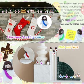 Dê vida à alegria da Páscoa com estes bonecos do Pequeno Jesus! Perfeitos para se esconder e procurar, estes mini brinquedos de borracha Jesus são para lembrancinhas de festa religiosas, presentes de batismo ou recheios de ovos de Páscoa da escola dominical. Medindo apenas alguns centímetros de altura, estes bonecos de bolso capturam a essência da estação com suas cores vibrantes e designs encantadores. Seja guardadas em cestas de Páscoa ou espalhadas pela casa, estas miniaturas oferecem uma maneira divertida e significativa de celebrar o feriado. - Conveniência de bolso: você receberá 100 peças de mini brinquedos de Jesus, o suficiente para suas necessidades de uso e substituição, e você pode compartilhá-los com outras pessoas. Cada miniatura de Jesus tem 3 x 3,5 cm, muito pequena e fácil de transportar para distribuir. Quando alguém parece precisar de esperança, bondade, ajuda, amor, paciência, você pode deixar pequenas figuras de Jesus aleatoriamente, e Jesus pode lhe dar tudo isso e muito mais - Suporte emocional a qualquer hora, em qualquer lugar: estes mini bonecos de Jesus são ideais para fornecer suporte emocional. Carregue o pequeno Jesus de borracha no bolso, bolsa, carro ou guarde-o no escritório, em casa ou até mesmo na escola, como um lembrete de sua fé e apoio sempre que precisar. Mantém você confortável e tranquilo durante todo o dia com uma sensação de paz - Materiais de borracha confiáveis: estas estatuetas de Jesus são feitas de borracha durável que é duradoura e garante que sejam macias ao toque e seguras para as crianças manusearem. Para que você possa espalhar um pouco de Jesus sem se preocupar com eles quebrarem. Basta deixá-los pela comunidade, trilhas para caminhadas, caixas de correio de vizinhos, banheiros, restaurantes... Levando mais pessoas à verdade de que "um pouco de Jesus" pode mudar drasticamente vidas - Presentes ideais: estas estatuetas de Jesus mini éster são pequenas e portáteis para crianças e adultos, e são ótimos favores para amigos, familiares e estranhos para mostrar-lhes cuidado e consideração e ensinar aos outros histórias religiosas e valores com estes bonecos de Jesus em miniatura. Estas mini estatuetas de Jesus podem ser uma maneira divertida e envolvente de apresentar lições importantes a todos e são ótimas maneiras de testemunhar e compartilhar a palavra de Jesus. Todo mundo precisa de um pequeno Jesus - Lembranças de festa versáteis: Estas miniaturas de éster Jesus são de um ótimo tamanho, são excelentes presentes de batismo, recompensas da escola dominical, recheios de ovos de Páscoa, esconde-esconde, estudo bíblico, evento de mala ou travessura na minha igreja, atividades religiosas, desfile ou festas de fim de ano. De eventos da igreja a projetos escolares, estes brinquedos Jesus adicionam um toque especial ao seu evento, trazendo alegria e significado religioso para qualquer ocasião