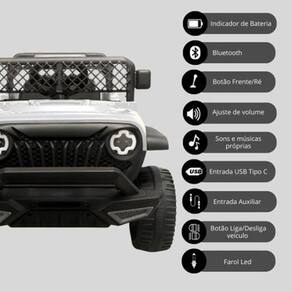 Mini Jipe Elétrico Infantil 12V Com Controle Remoto, Bluetooth, Usb, Farol Led e Marcha Ré - Branco