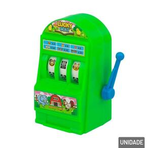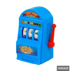 Mini Jogo Infantil Caça Níquel Plástico Co O Mini Jogo Infantil Caça-Níquel é uma divertida simulação de máquina de cassino para crianças. Basta girar a alavanca e torcer para formar combinações.\nFeito em plástico colorido, é leve, resistente e fácil de brincar. Estimula a coordenação e o raciocínio de forma lúdica e segura.\nDisponível em cores diversas.\nEspecificações:\nMarca : ARK BRASIL\nTipo de material : Plástico\nCores ou Estampa : Color\nDimensões do Produto : 8 X 6 X 3,5 CM\nDimensões da Embalagem : 8 X 6 X 3,5 CM\nPeso Bruto (Gramas) : 0.022