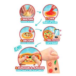 Com o Mini Kit Slimy DIY Street Food Crush - Pizza, as crianças podem criar pizzas de slime superrealistas! Misture, modele e decore os ingredientes para fazer uma pizza única. Depois de modelar, esmague para uma sensação cremosa e divertida. Perfeito para estimular a criatividade, imaginação e habilidades motoras, proporcionando uma experiência sensorial incrível e segura.