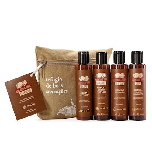 Kit VIAGEM Xampu: Durante o banho, molhe bem os cabelos. Aplique uma quantidade adequada de xampu na palma da mão, distribua-o entre as mãos e massageie suavemente o couro cabeludo com a ponta dos dedos. Espalhe a espuma ao longo dos fios, garantindo cobertura completa. Enxague bem os cabelos para remover todo o xampu. Se necessário, repita a aplicação.