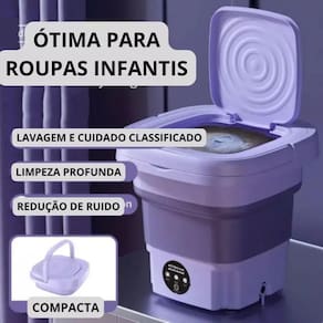 Compacta e dobrável: ocupa um espaço mínimo e pode ser dobrada para fácil armazenamento. Fácil de usar: painel intuitivo para ajustar o tempo de centrifugação de acordo com suas necessidades. Economia de tempo: as roupas secam rapidamente, economizando seu tempo. Perfeita para espaços pequenos: ideal para apartamentos, quartos de estudantes, acampamentos e viagens. Lavagem suave: perfeita para peças delicadas ou de bebês, evitando puxões e deformações. Lavagem profunda: agitador de movimento positivo e negativo que imita a lavagem à mão, removendo manchas eficazmente. Portabilidade: design leve e fácil de transportar. Esterilização: inclui desinfecção automática por luz azul.