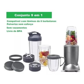 Mini Liquidificador Portátil 900w Extrator De Suco Personal Blender 9 Peças Voltagem: 220V Com o Personal Blender, você prepara sucos, vitaminas, shakes e coquetéis, e pode carregar para academia, escritório ou qualquer outro lugar. Os 900W de potência proporcionam um excelente desempenho no preparo das bebidas. São 4 copos: um de 950ml, dois de 700ml, e um 530ml super-resistentes. Os copos se transformam em squeeze e podem ser levados para qualquer lugar. Sua rotina fica muito mais prática