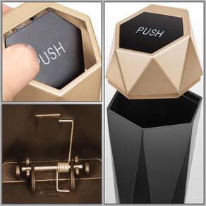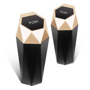 DNA MOTORING 2 pçs mini caixote do lixo automotivo com tampa removível, mini lixeira à prova de vazamento para home office automotivo, preto/dourado, conjunto de 2, ZTL-OD-01-GD - ?Lata de lixo compacta para carros?Design em forma de diamante de cristal. Cabe facilmente na maioria dos porta-copos e portas de carros - ?Especificações? Dimensões gerais de 7,8 cm C x 7,8 cm L x 19,8 cm (A) / Capacidade de 0,5 litros - ?Estrutura de plástico ABS?Feito de materiais de alta qualidade para proporcionar durabilidade e longevidade - ?Conveniência?Abra a porta com tampa com mola para manter o lixo e odores dentro. é facilmente aberto e fechado automaticamente - ?Tampa superior removível?Parte superior removível para facilitar a limpeza e eliminar o conteúdo