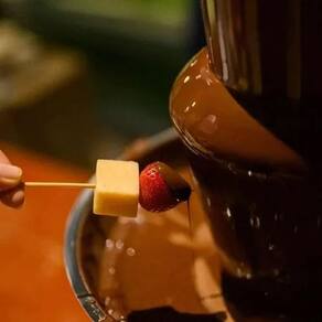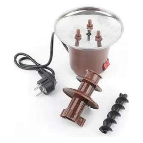 Mini Máquina Chocolate Cascata Fondue Panela Elétrica 60w Voltagem: 220v Mini máquina de fondue cascata de chocolate Contém corpo compacto e é muito fácil de usar, basta ligar na tomada, em uma entrada de dois pinos. Agora é colocar o chocolate já derretido em sua base e ligar o motor. O chocolate é impulsionado através da torre, gerando um formato de cascata.
