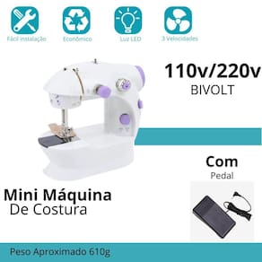 Descrição do anúncio: A mini máquina de costura reta portátil bivolt doméstica compacta sm-202a é a ferramenta perfeita para todas as suas necessidades de costura, sejam elas básicas ou criativas. Ideal tanto para iniciantes quanto para profissionais experientes, essa máquina oferece praticidade e versatilidade com seu design leve e portátil, podendo ser utilizada tanto conectada à tomada quanto com pilhas. Com diversos recursos úteis, como seleção ajustável de pontos e lâmina para cortar linha, essa máquina é durável, confiável e fácil de armazenar em pequenos espaços. Conteúdo da embalagem: 01 mini máquina de costura 01 fonte de energia com tomada 01 pedal de acionamento 04 mini carretéis de linha Características: Ponto fixo de duas linhas Seletor de alta/baixa velocidade Costura dianteira e reversa Rebobinamento automático da linha Comprimento ajustável do ponto manual ou pedal para iniciar Luz projetada no local da costura Ajuste de posições Lâmina para cortar a linha Construída com materiais de alta qualidade para desempenho estável e preciso Especificações: Modelo: mini máquina de costura sm-202a Material: plástico resistente, metal, componentes elétricos Alimentação de energia: tomada plugue padrão eu ou 04 pilhas aa não inclusas Voltagem: 110v/220v Dimensões aproximadas: 19cm altura x 19cm comprimento x 9,5cm largura Peso aproximado: 610g Principais perguntas sobre o produto e respostas: A máquina de costura é bivolt Sim, a mini máquina de costura sm-202a é bivolt automático. Posso usar a máquina sem estar conectada à tomada Sim, a máquina pode ser utilizada com 4 pilhas aa não inclusas , proporcionando portabilidade. Quais acessórios estão incluídos na embalagem A embalagem inclui 01 mini máquina de costura, 01 fonte de energia com tomada, 01 pedal de acionamento, e 04 mini carretéis de linha. A máquina é adequada para iniciantes Sim, a máquina é ideal tanto para iniciantes quanto para profissionais, oferecendo diversas funcionalidades e facilidade de uso. Qual é a do produto O vendedor oferece uma de 30 dias para a mini máquina de costura sm-202a. Qual é a velocidade de costura da máquina A máquina faz 110 pontos por minuto. A máquina possui função de costura reversa Sim, a máquina possui função de costura dianteira e reversa. Quais são as dimensões do produto As dimensões aproximadas da máquina são 19cm altura x 19cm comprimento x 9,5cm largura . Qual é o peso do produto O peso aproximado da máquina é de 610g. Posso ajustar o comprimento do ponto de costura Sim, a máquina permite o ajuste do comprimento do ponto de costura.