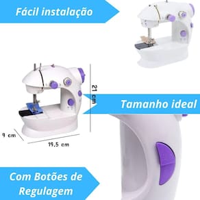 A máquina de costura é bivolt Sim, a mini máquina de costura sm-202a é bivolt automático. Posso usar a máquina sem estar conectada à tomada Sim, a máquina pode ser utilizada com 4 pilhas aa não inclusas , proporcionando portabilidade. Quais acessórios estão incluídos na embalagem A embalagem inclui 01 mini máquina de costura, 01 fonte de energia com tomada, 01 pedal de acionamento, e 04 mini carretéis de linha. A máquina é adequada para iniciantes Sim, a máquina é ideal tanto para iniciantes quanto para profissionais, oferecendo diversas funcionalidades e facilidade de uso. Qual é a garantia do produto O vendedor oferece uma garantia de 30 dias para a mini máquina de costura sm-202a. Qual é a velocidade de costura da máquina A máquina faz 110 pontos por minuto. A máquina possui função de costura reversa Sim, a máquina possui função de costura dianteira e reversa. Quais são as dimensões do produto As dimensões aproximadas da máquina são 19cm altura x 19cm comprimento x 9,5cm largura . Qual é o peso do produto O peso aproximado da máquina é de 610g. Posso ajustar o comprimento do ponto de costura Sim, a máquina permite o ajuste do comprimento do ponto de costura. Marca: AL