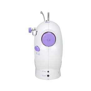 Mini Máquina de Costura Reta Portátil Bivolt SM-202A. Leve e fácil de transportar. Possui lâmina para cortar a linha, luz projetada no local da costura, e ajuste de posições. Alimentação via tomada ou 4 pilhas AA (não inclusas). Inclui fonte de energia, pedal e mini carretel de linha.Funções